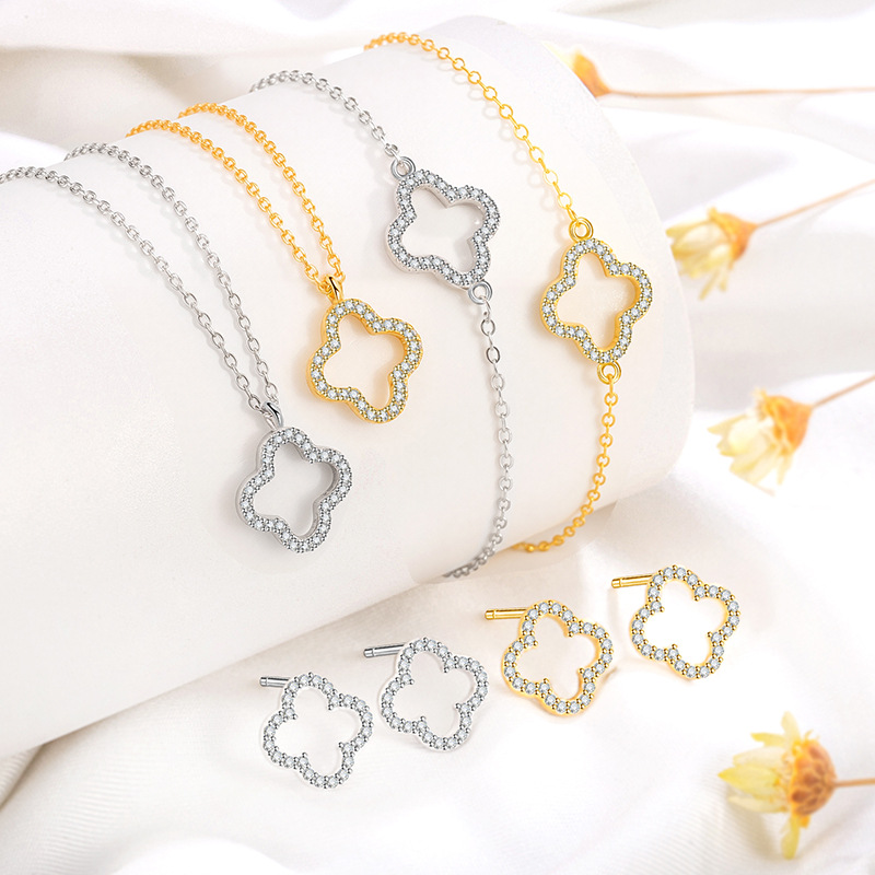 Wholesale Four-Leaf Clover Bracelet Cross-Border Four-Leaf Clover Necklace Four-Leaf Clover Earrings Lucky Clover Bracelet Necklace Earrings Set