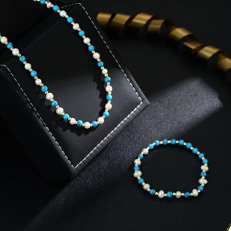 Elegant, Light, Luxurious, Fashionable, Simple, Sweet, Natural Pearl Turquoise, Hand-Beaded Hand Necklace Set Wholesale
