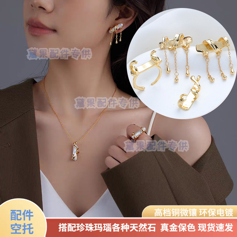 DIY Jewelry Set with a Simple and Elegant Design, Featuring a New Gold Snake Wrap Pendant Ring with a Copper Base Plated in Real Gold