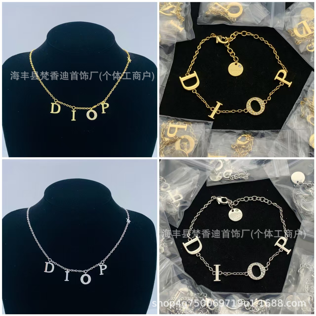 Manufacturer Wholesale Cd Letter Bracelet Necklace for Women Cross-Border Classic Four-Letter Xiaohongshu Same Style High-Quality Set