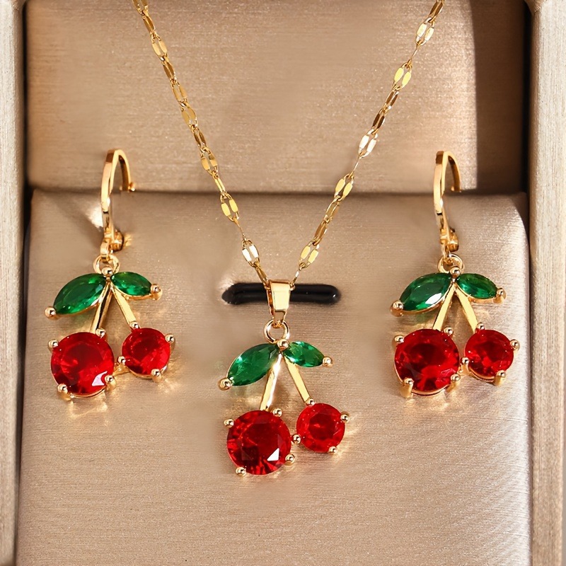 Cross-Border Xiyin Amazon New Cherry Pendant Fashionable and Elegant Light Luxury Cherry Earrings Stainless Steel Necklace Set