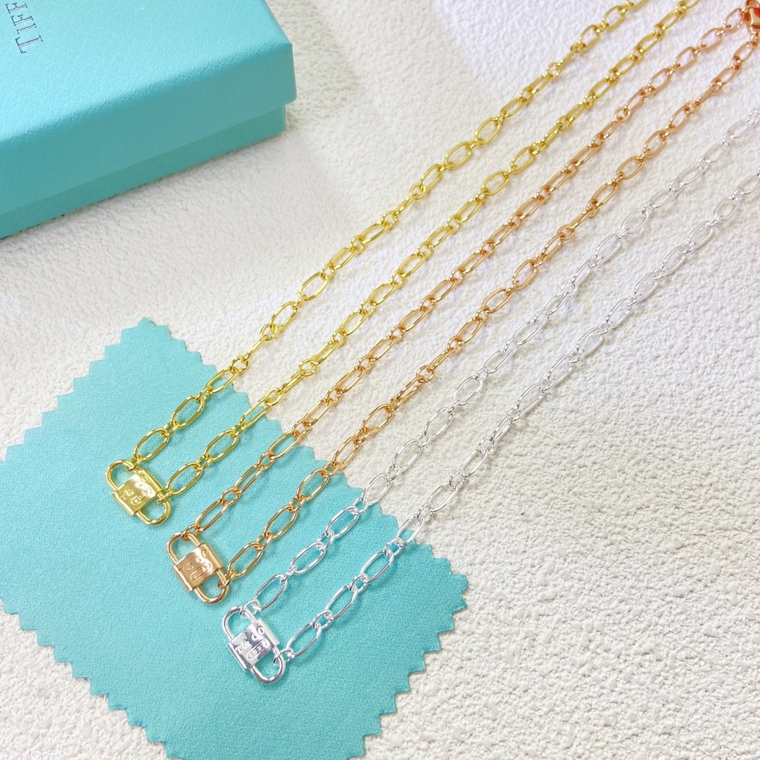 T Brand Double Lock Necklace, Bracelet, and Earring Set for Women, Versatile Accessories, European and American Cross-Border Short Style, Trendy and Unique