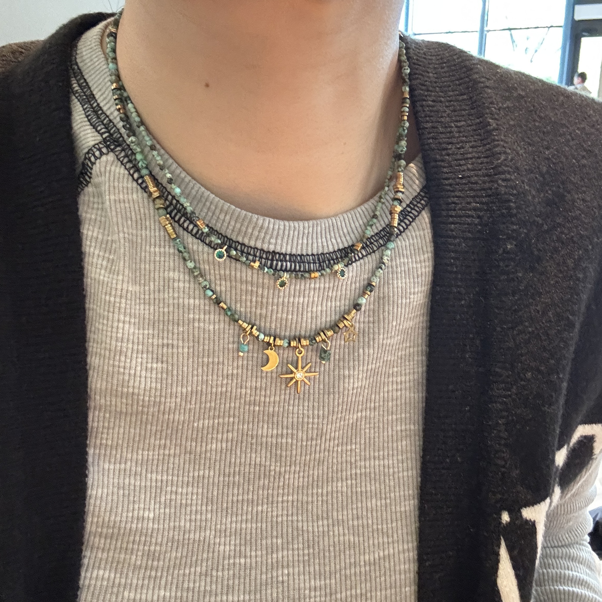 Vintage Star Moon Natural Stone Titanium Steel Beaded Necklace Light Luxury Niche Jewelry Women's High-end Collarbone Chain Accessories