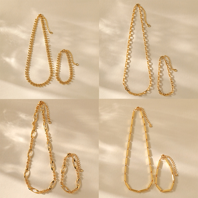 Foreign trade hot boutique jewelry gold-plated jewelry 5MM full side necklace bracelet fashion two-piece suit 18K words