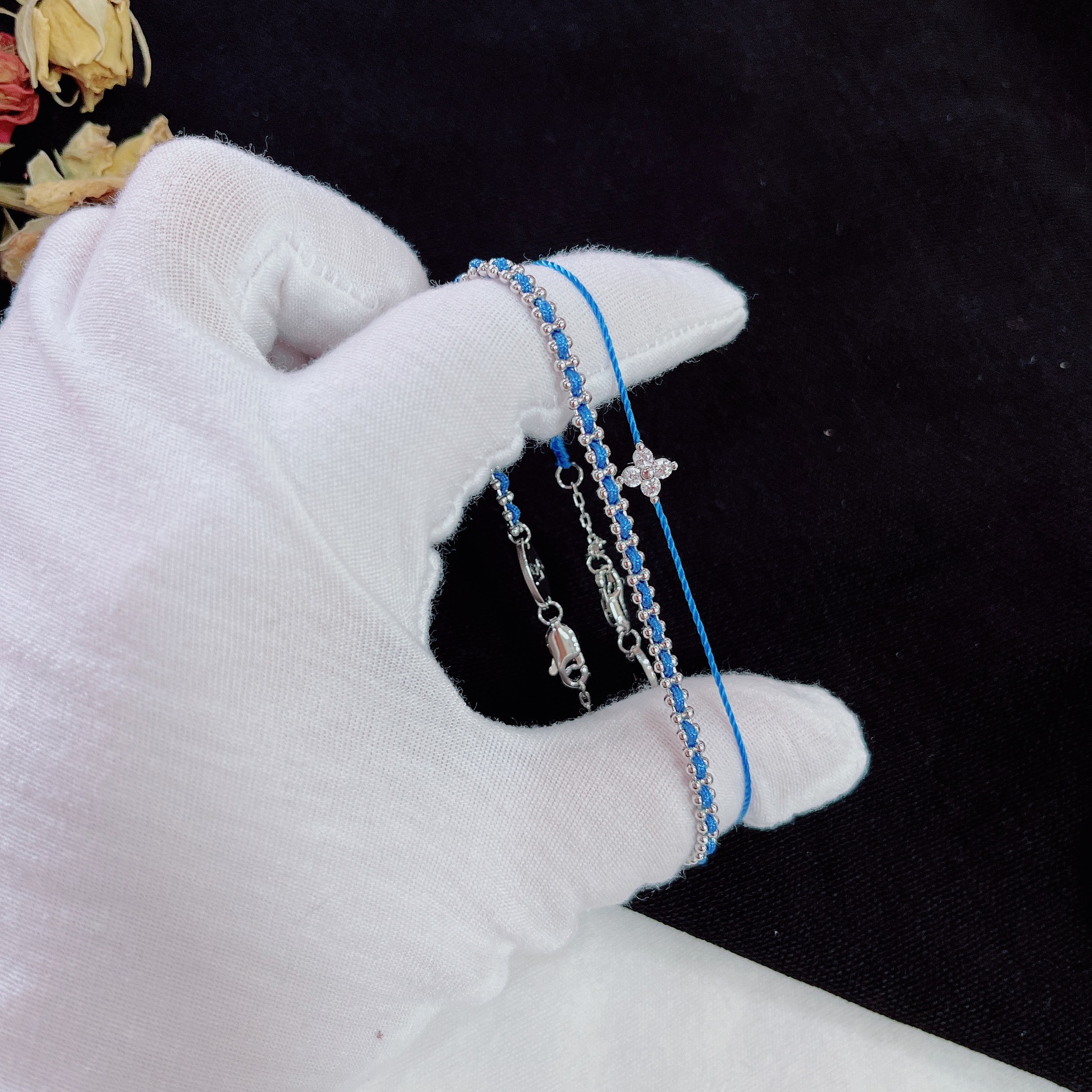 Two-Piece Set Red Handmade Woven Bracelet Lucky Clover Versatile Light Luxury Bracelet Set for Women