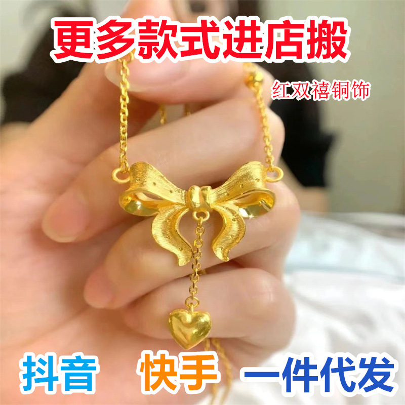 Alluvial Gold Jewelry Fugitive Princess Necklace Women's Light Luxury Niche Bow Clavicle Chain Imitation Gold Cross-Border Jewelry
