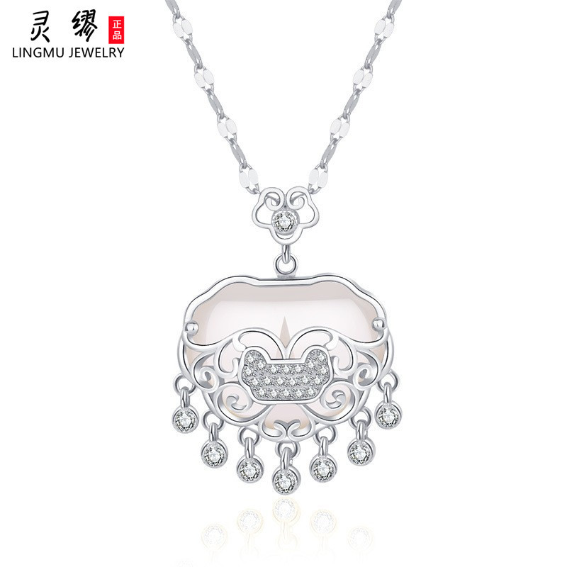 Cross-Border Live Broadcast Wholesale Hotan White Chalcedony Ruyi Safe Fashion Longevity Lock Tassel Necklace Women's Manufacturer Dropshipping