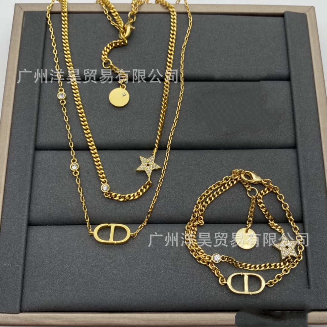 Seiko D High-Quality Cd Letter Full Diamond Star Double-Layer Stacked Necklace Bracelet Set Factory Direct Sale
