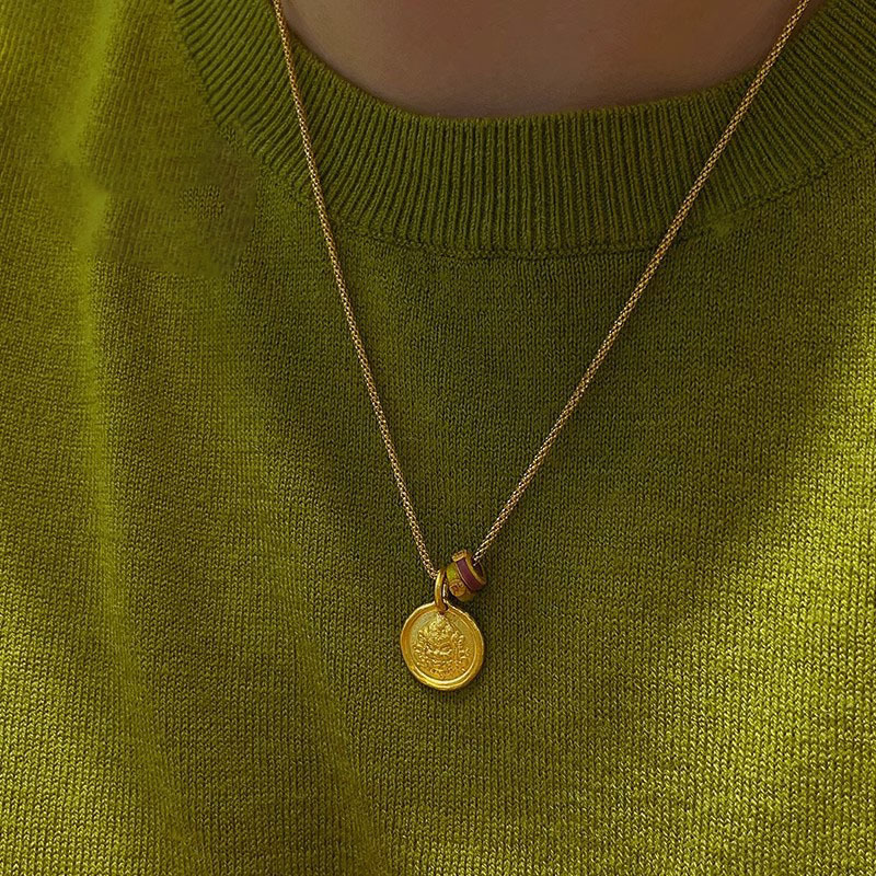 Gold Color Classic Yellow God of Wealth Zakiram Running Ring Gold Pendant Necklace Set Accessible Luxury High-End Niche Gift Giving