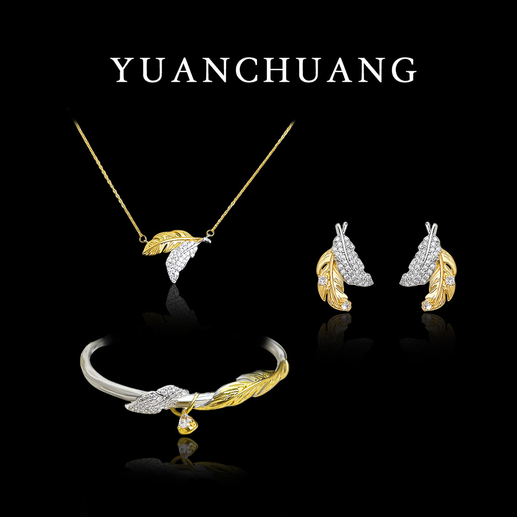 "Mengyu" Original Design Feather Jewelry Set Accessible Luxury Zircon Earrings High-End 18K Gold Plated Necklace for Women