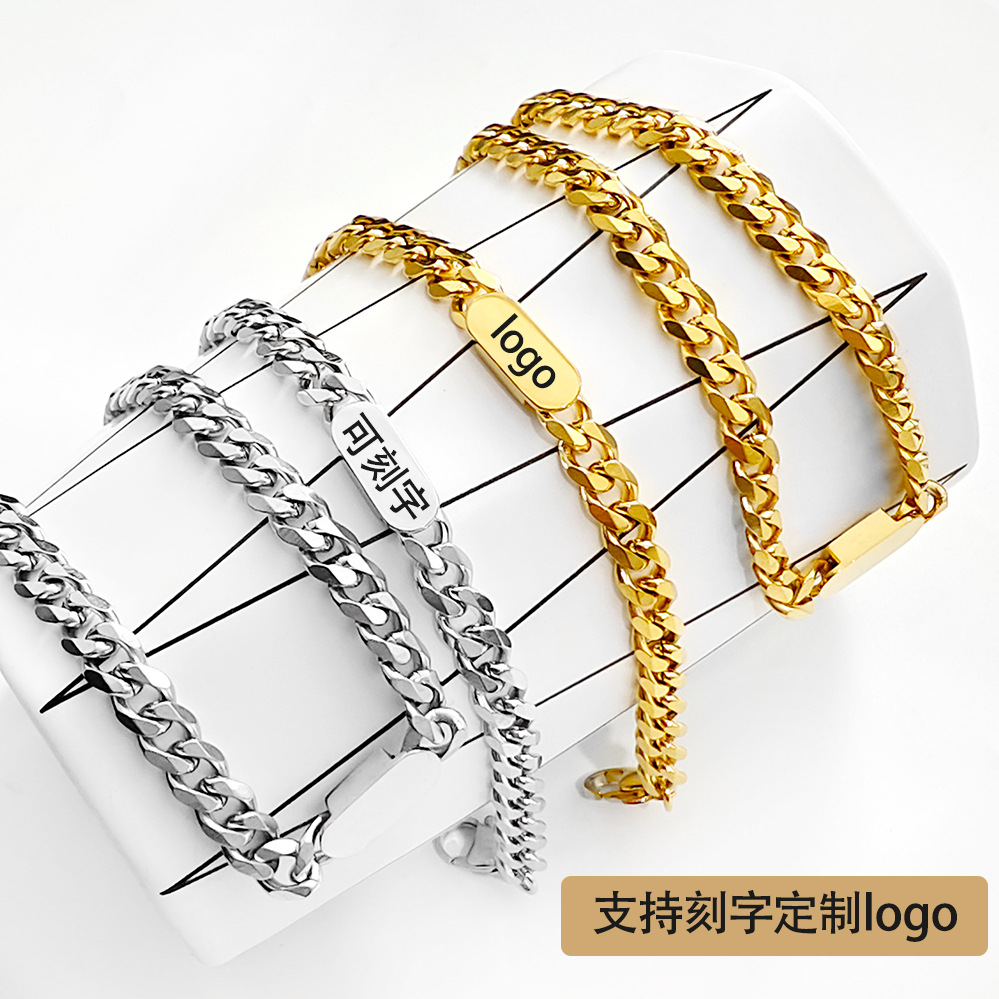 European and American Exaggerated Thick Flat Chain Necklace Women's Hiphop Curved Brand Hip-Hop Trendy Export Bracelet Jewelry Couple Set