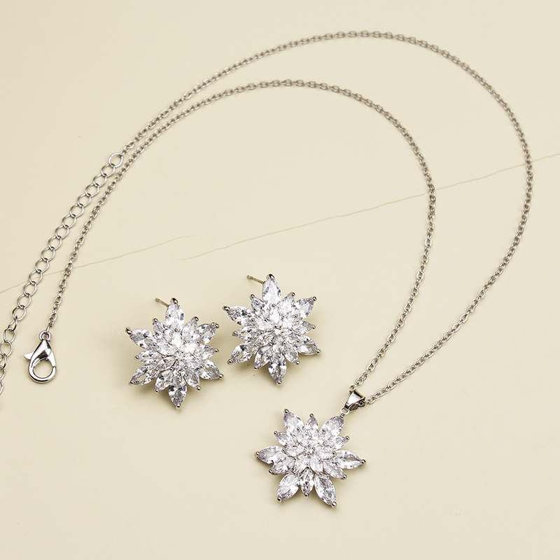 GS051 high-end Korean snowflake zircon necklace earrings suit women's necklace earrings two pieces suit