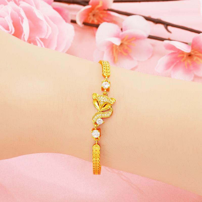 Light Luxury Imitation 18K Gold Set Small Fox Ring Internet Celebrity Live Clavicle Chain Supply Fashion Sand Gold Bracelet for Women