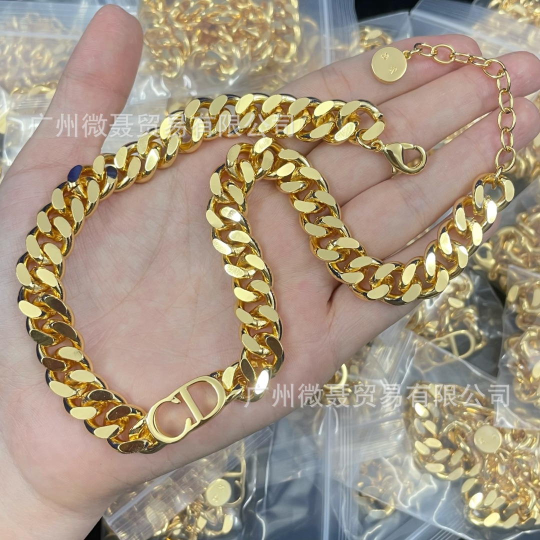 Seiko High-End D-Brand Letter Cd Thick Chain Gold-Colored Set Necklace for Women, High-End Heavy Gold Bracelet for Women, Wholesale