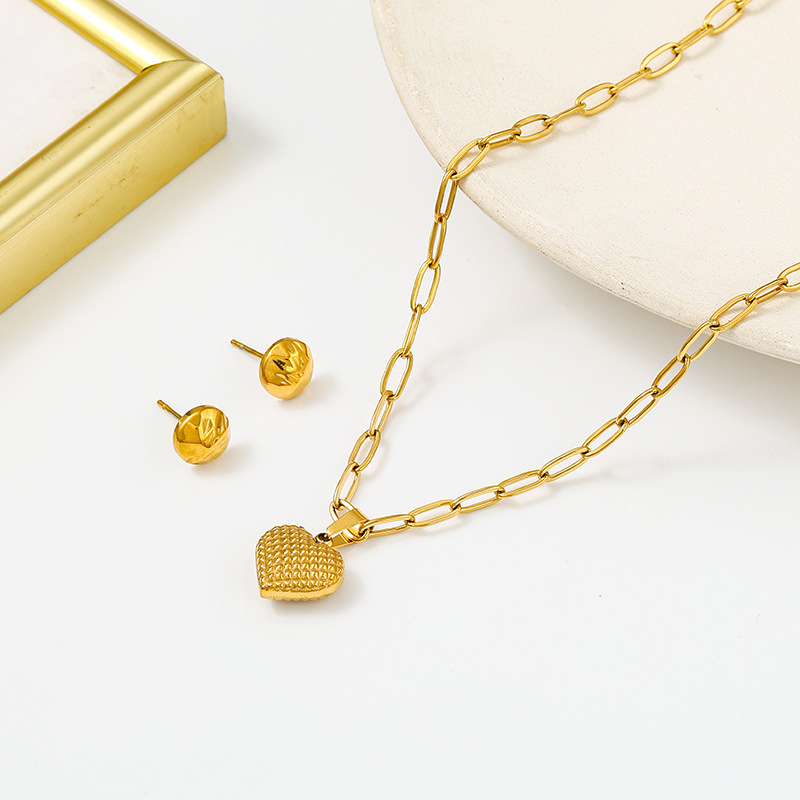 Fashionable Cross-Border High-End Temperament Love Pendant Stainless Steel Necklace Women's Clavicle Chain Earrings Set Decoration Wholesale