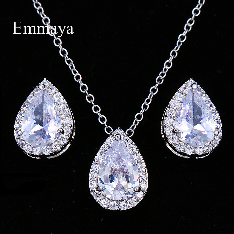 Emmaya European and American fashion classic popular water drop necklace earrings two-piece set inlaid AAA zircon jewelry set