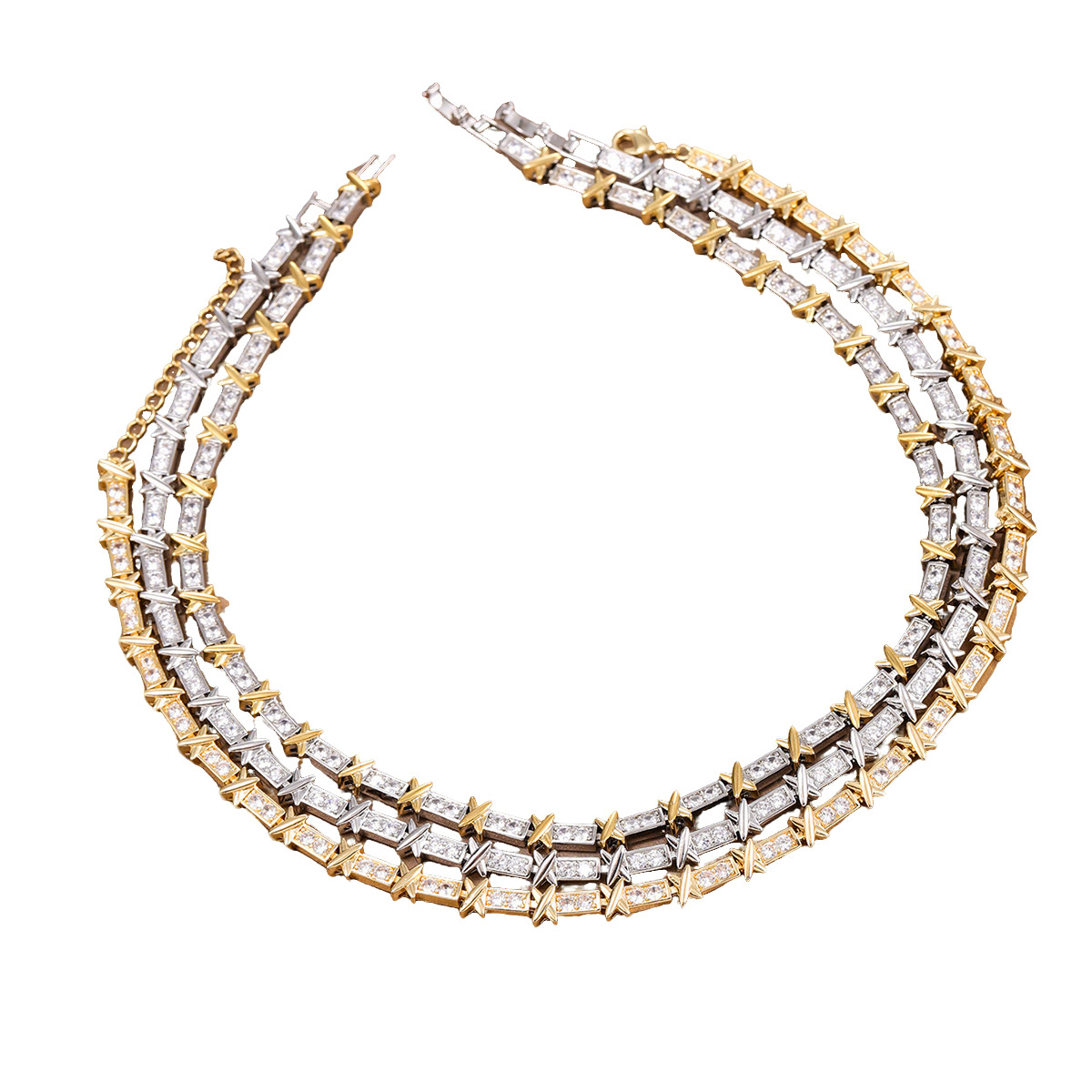 European and American Accessible Luxury Inlaid Zircon Full Diamond Necklace Bracelet Set Design Gold and Silver Color Stitching Clavicle Chain Jewelry