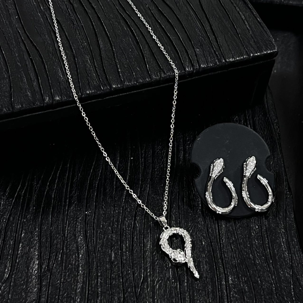 European and American Popular Copper-Plated Real Gold Micro-Paved Zircon Snake-Shaped Necklace Simple Earrings Set Elegant Fashion High-End Jewelry
