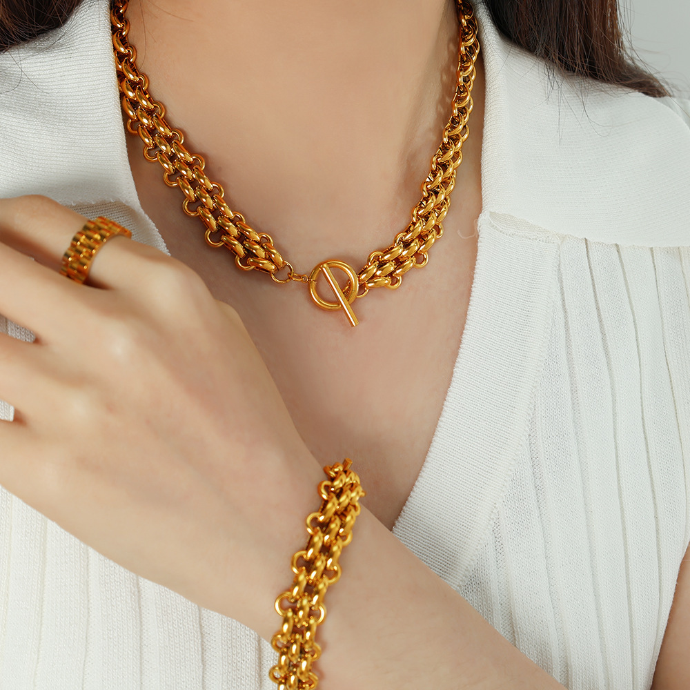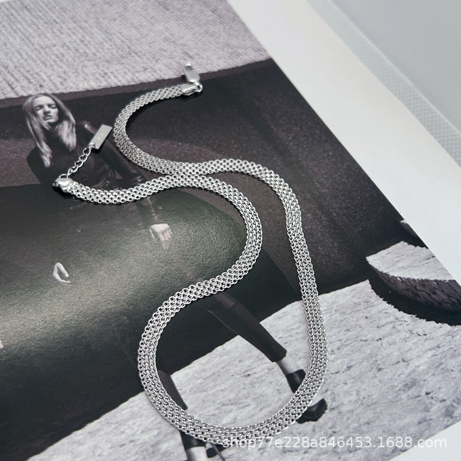 European and American Simple and Unique Woven Cut Out Wide Necklace Bracelet Set Ins Trend Mesh Clavicle Chain Classy Versatile