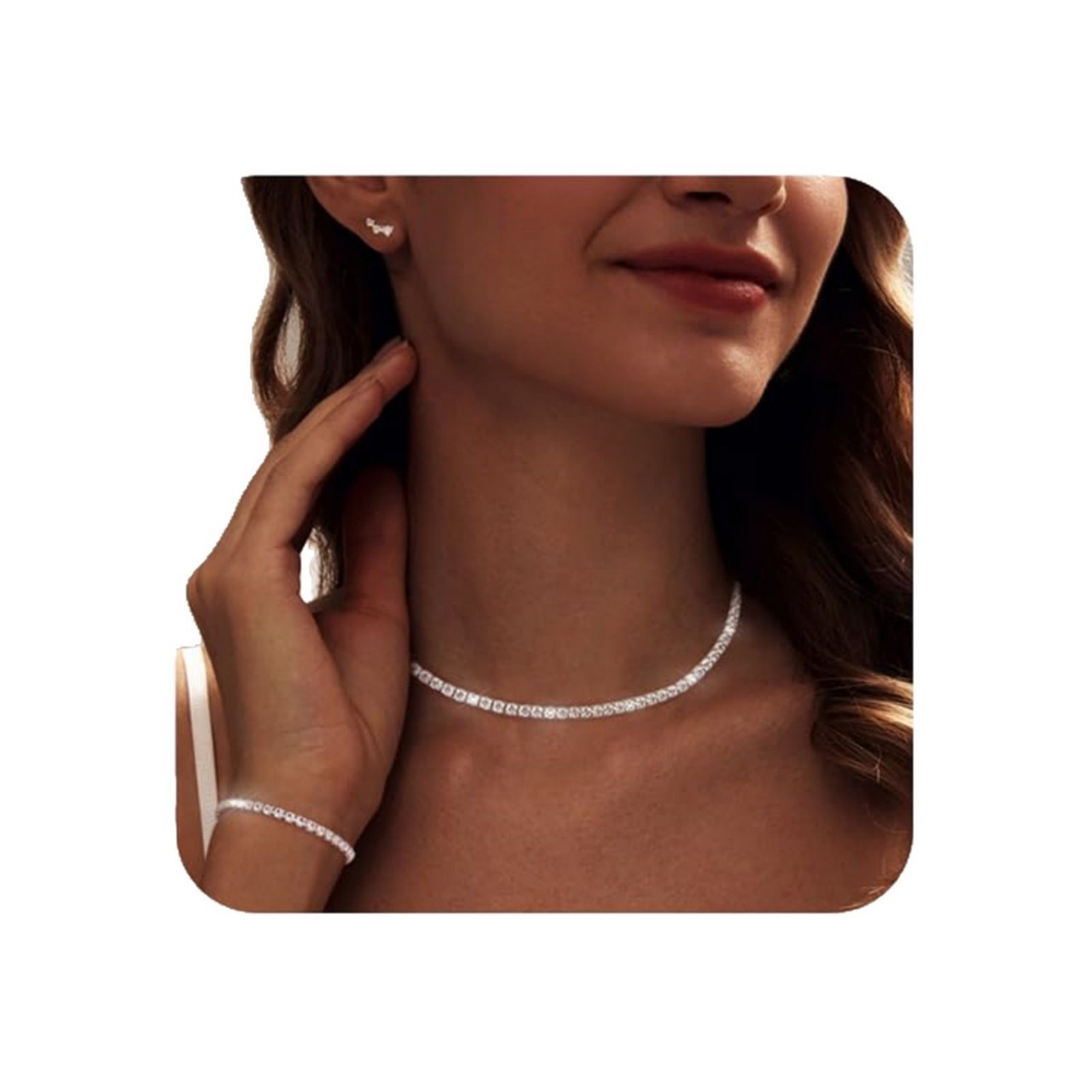 European and American Cross-Border Hot-Selling Brass Real Gold Electroplating Fashionable and Exquisite Light Luxury Style Zircon Earrings Bracelet Necklace Set