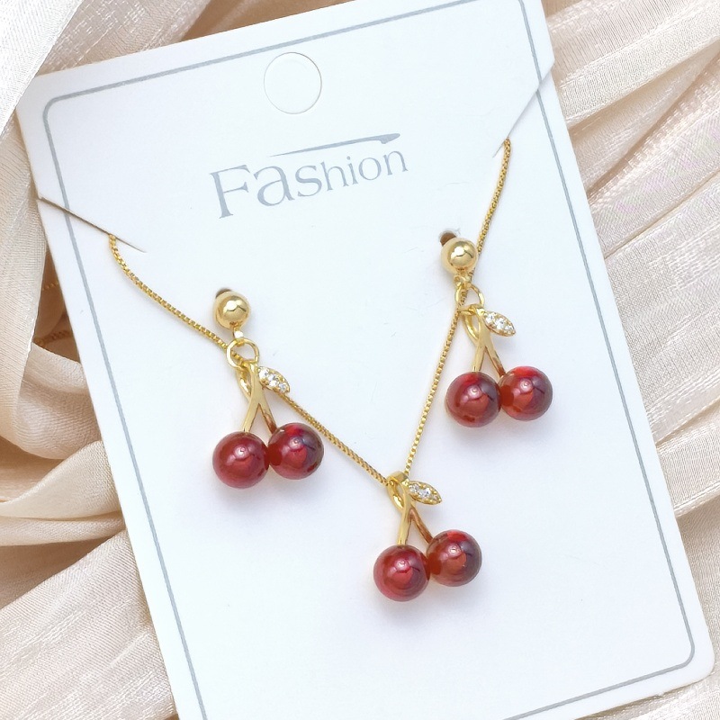 [Titanium Steel] Real Gold Electroplated Necklace Girls Sweet and Exquisite Fruit Cherry Light Luxury High-End Clavicle Chain Set