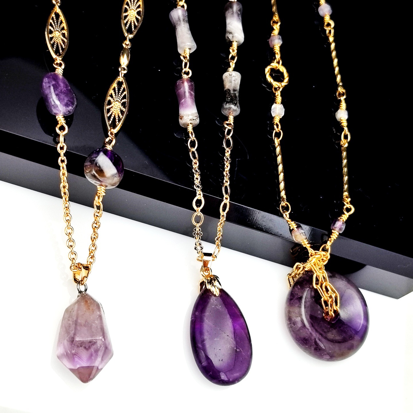 Retro Amethyst Necklace Women's Sweater Chain Natural Crystal Pendant High-End European and American Style Jewelry Set