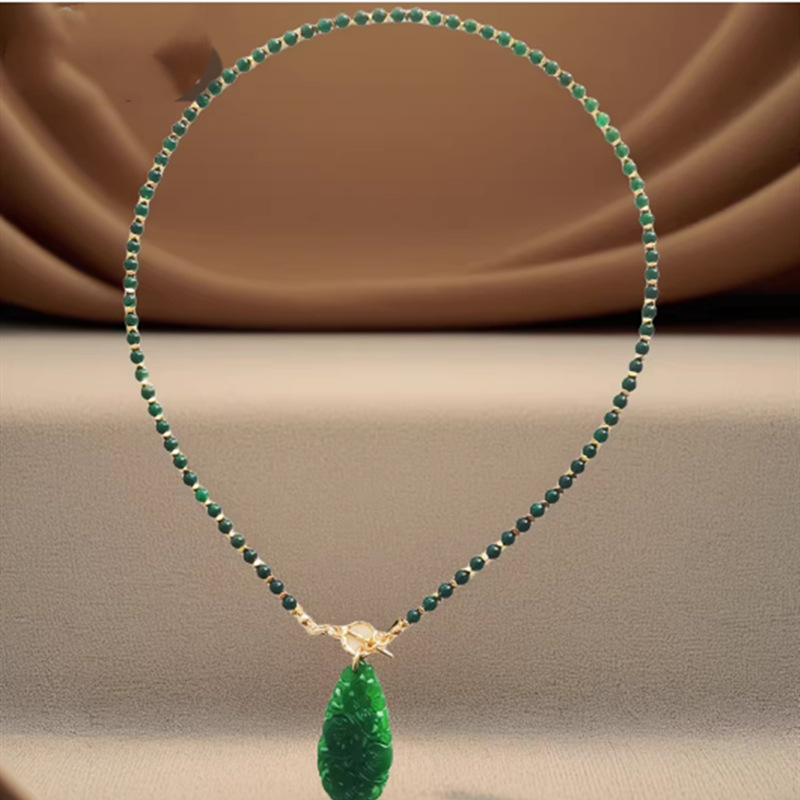 New Chinese-Style Green Tourmaline High-End Niche Pendant Clavicle Chain Green Agate Beaded Splicing Necklace and Earrings Set
