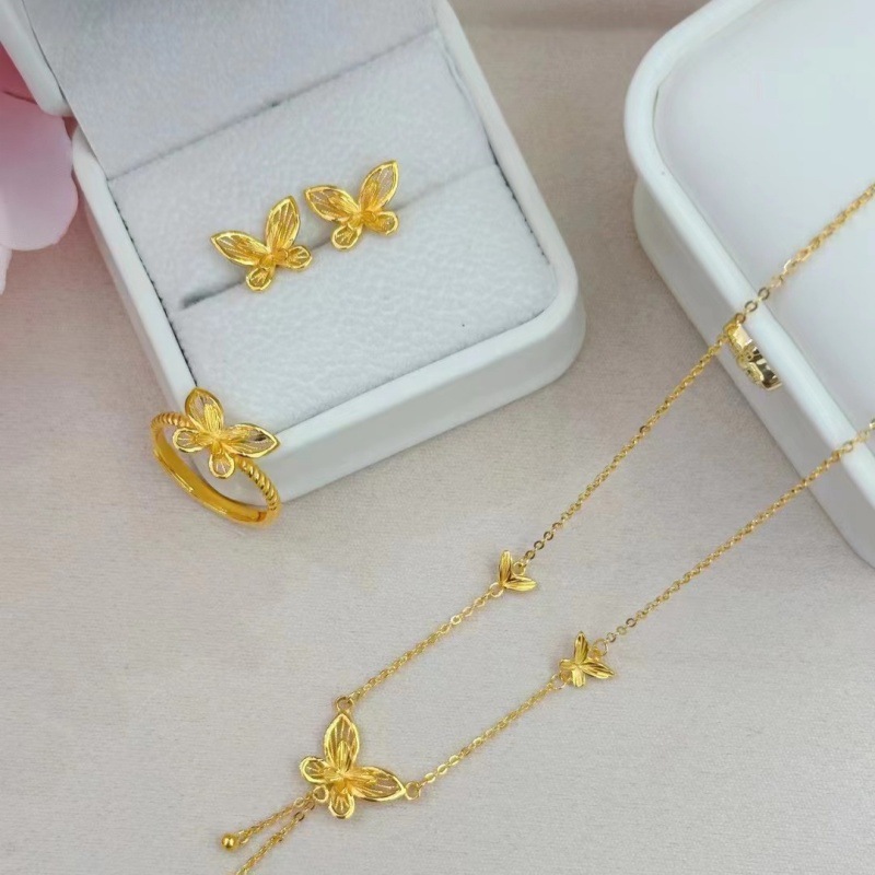 Authentic Fidelity 5g Gold Butterfly Set Chain Ring Earrings Pure Gold 999 Set Chain Earrings Bracelet Three-Piece Set Free Shipping