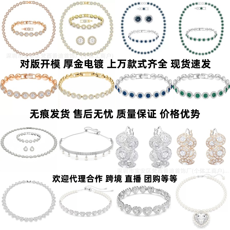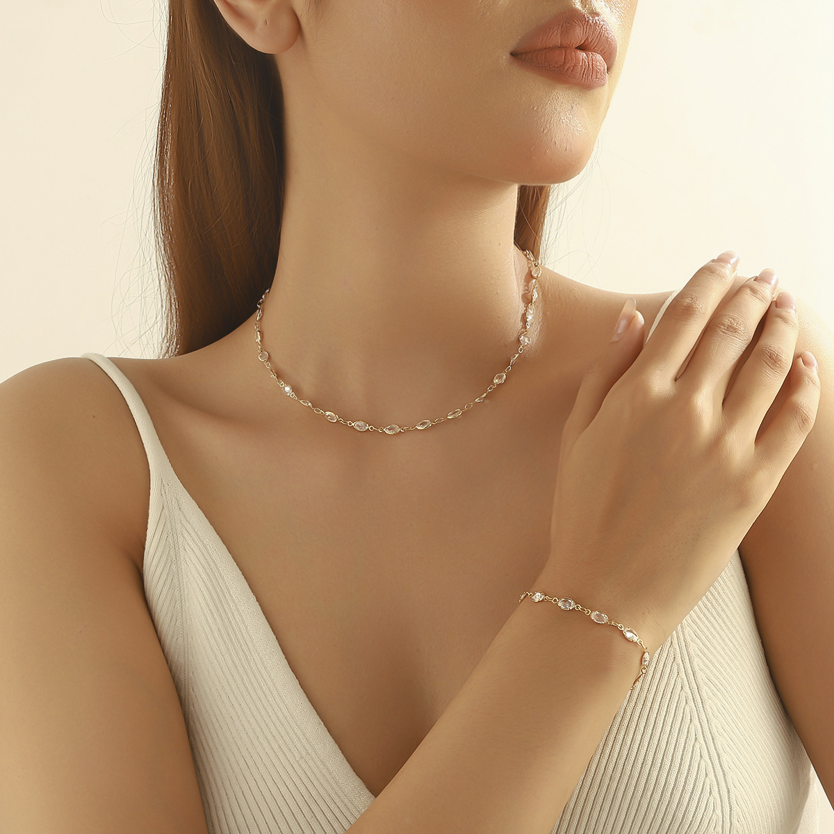 Shijia's Version of the Roman Una Series Necklace Set Swarovski Crystal Inlaid Round Diamond Choker Bracelet