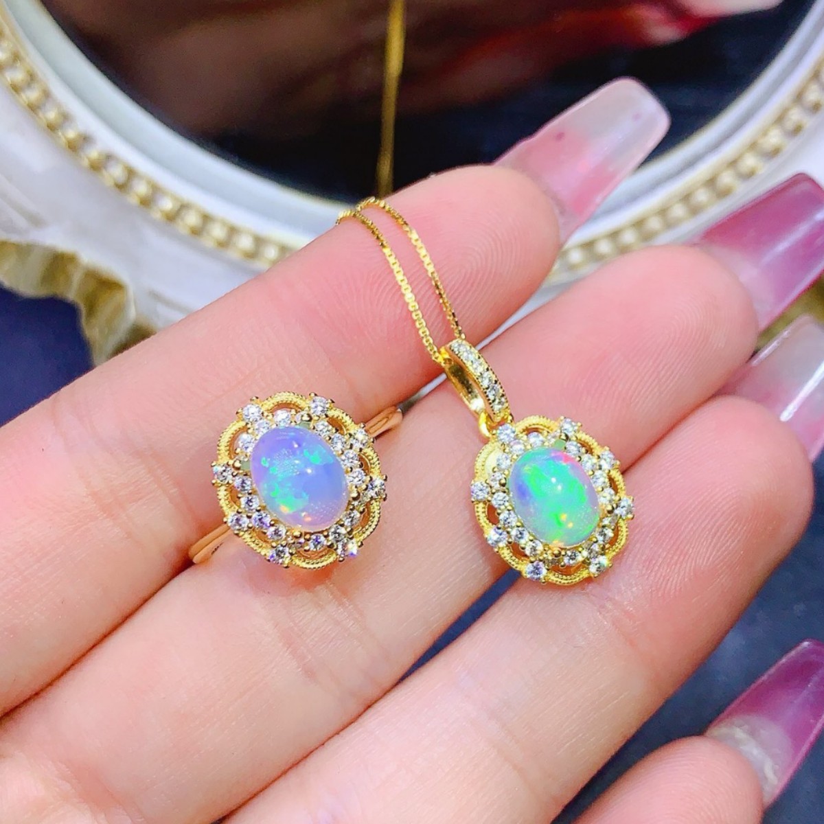 Natural Opal Set Ring Pendant 925 Silver Fine Workmanship Empty Setting Inlaid 6*8mm Hot Selling Cross-Border Dropshipping