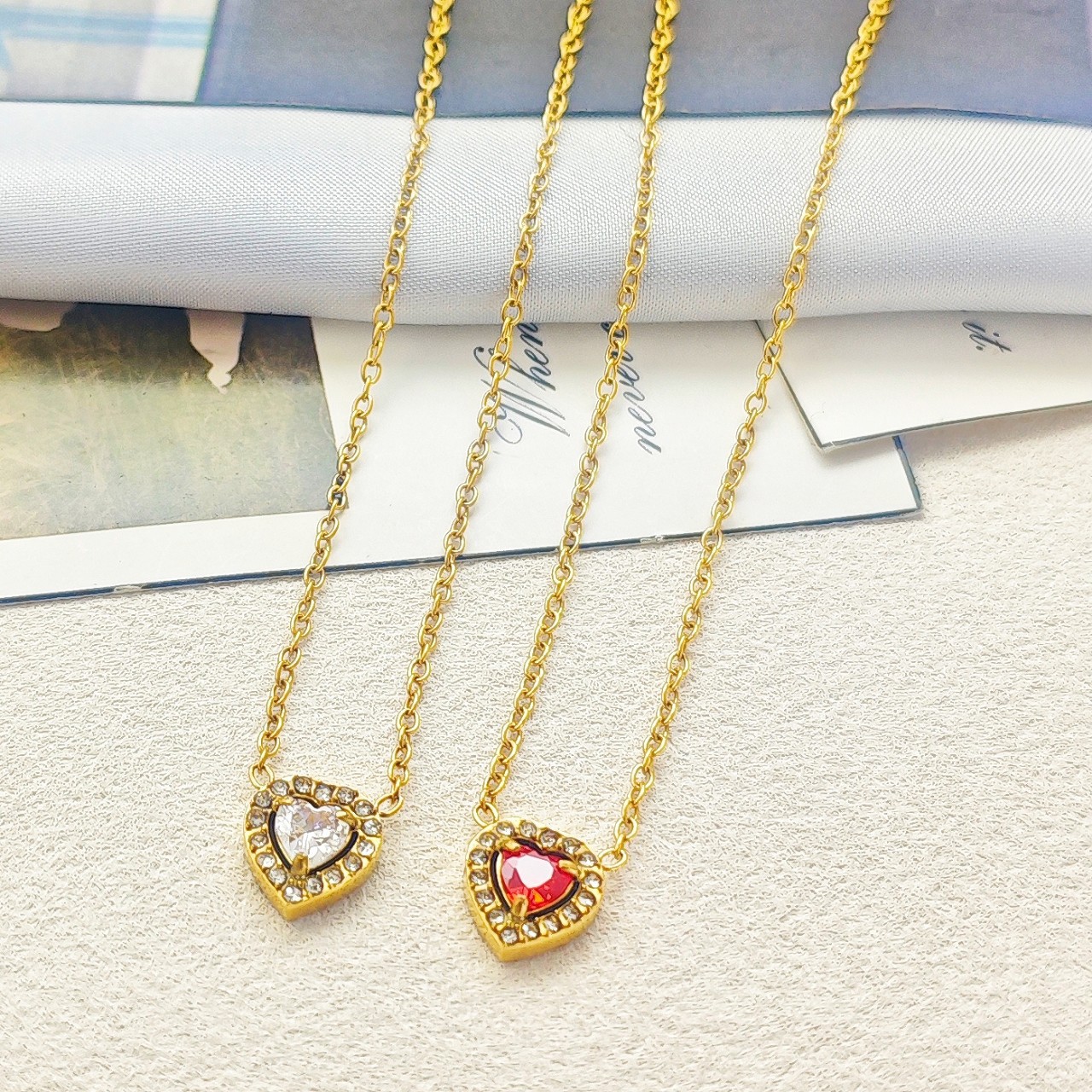 French Necklace Internet Celebrity Orange Zircon Love Jewelry Light Luxury New Temperament Set Stainless Steel Clavicle Chain