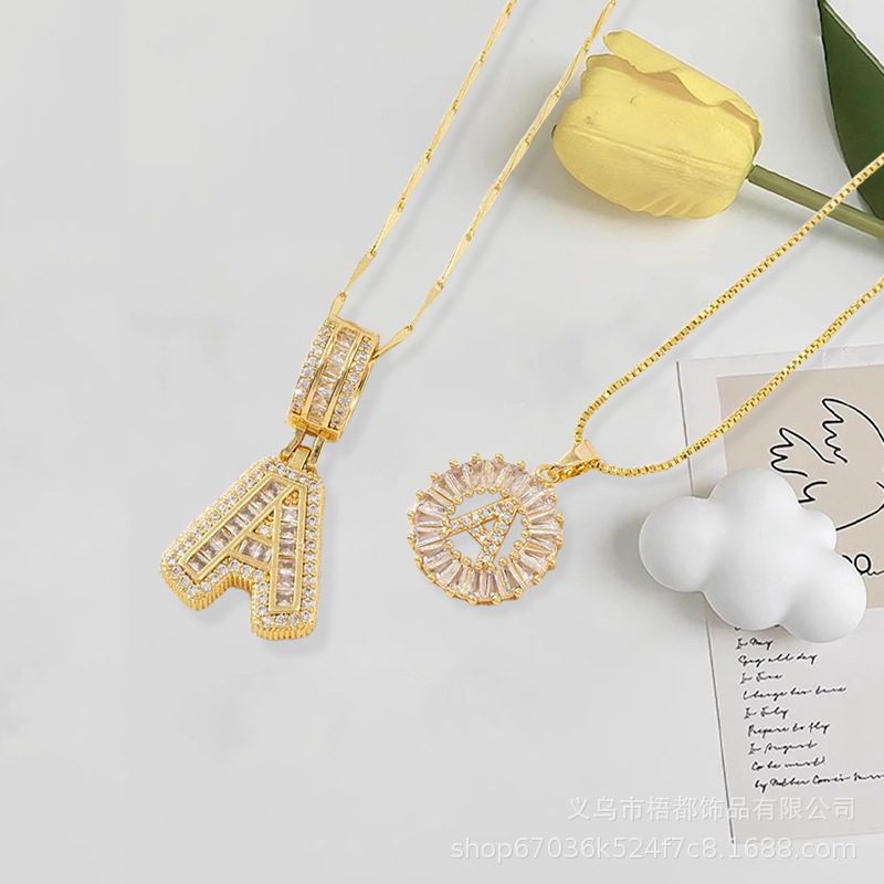 European and American Cross-Border Rock Sugar Full Diamond 26 English Letter Necklace Copper Inlaid Zircon Real Gold Plated Flower Letter Set Wholesale