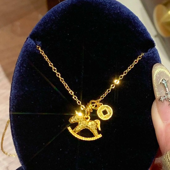 24K Real Gold Electroplated Pony Necklace Bracelet Earrings Accessible Luxury High-End Earrings Trendyy Versatile Jewelry Set for Women