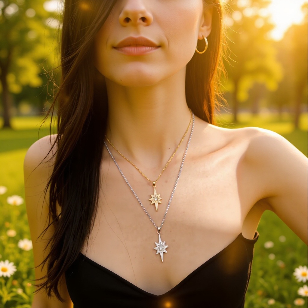 Necklace for Women, New Model, Full Zircon Five-Pointed Star Necklace and Earrings Set, Titanium Steel Jewelry, Flower Earrings, Fashionable