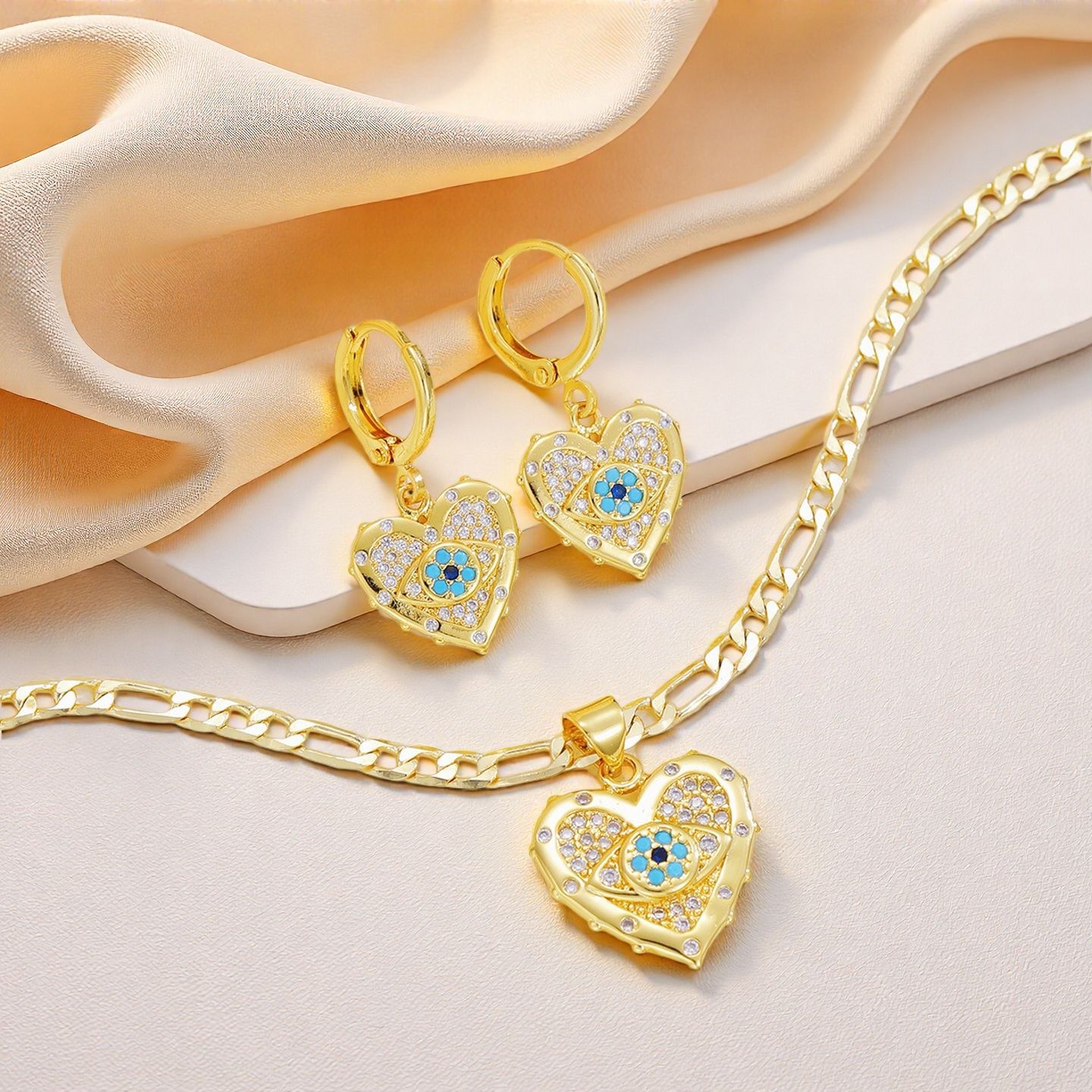 Cross-Border Hot-Selling Fashionable and Personalized Copper-Plated Real Gold Zircon Devil's Eye Love Pendant Necklace Earrings Earrings Set