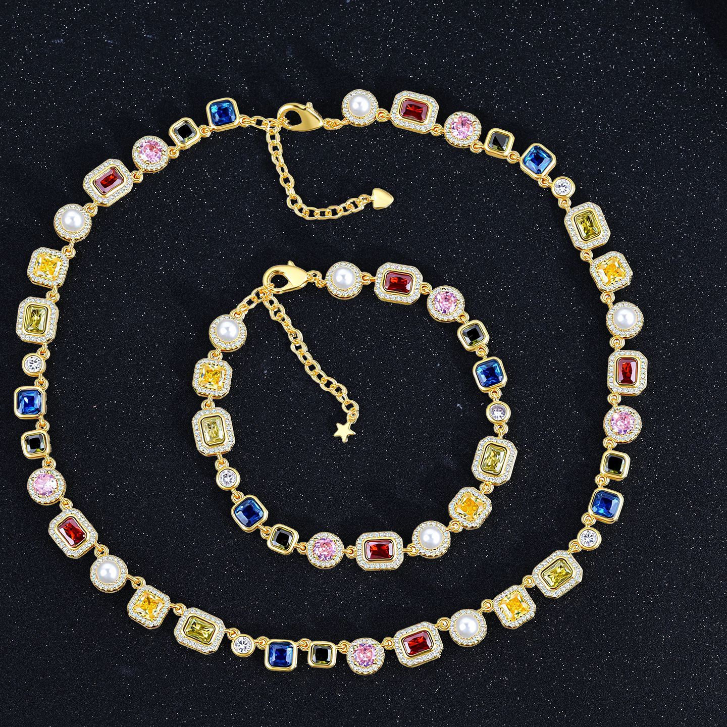 High-End Foreign Trade Ice Zircon Jewelry Set, Copper Rhodium-Plated, Luxurious and Elegant, Cross-Border Jewelry, Amazon Necklace Set