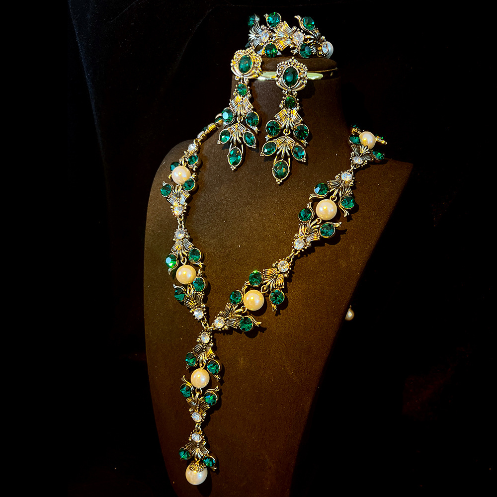 European and American Cross-border Forest Green Jewelry suit vintage Retro Niche Design Gold Plated Old Necklace
