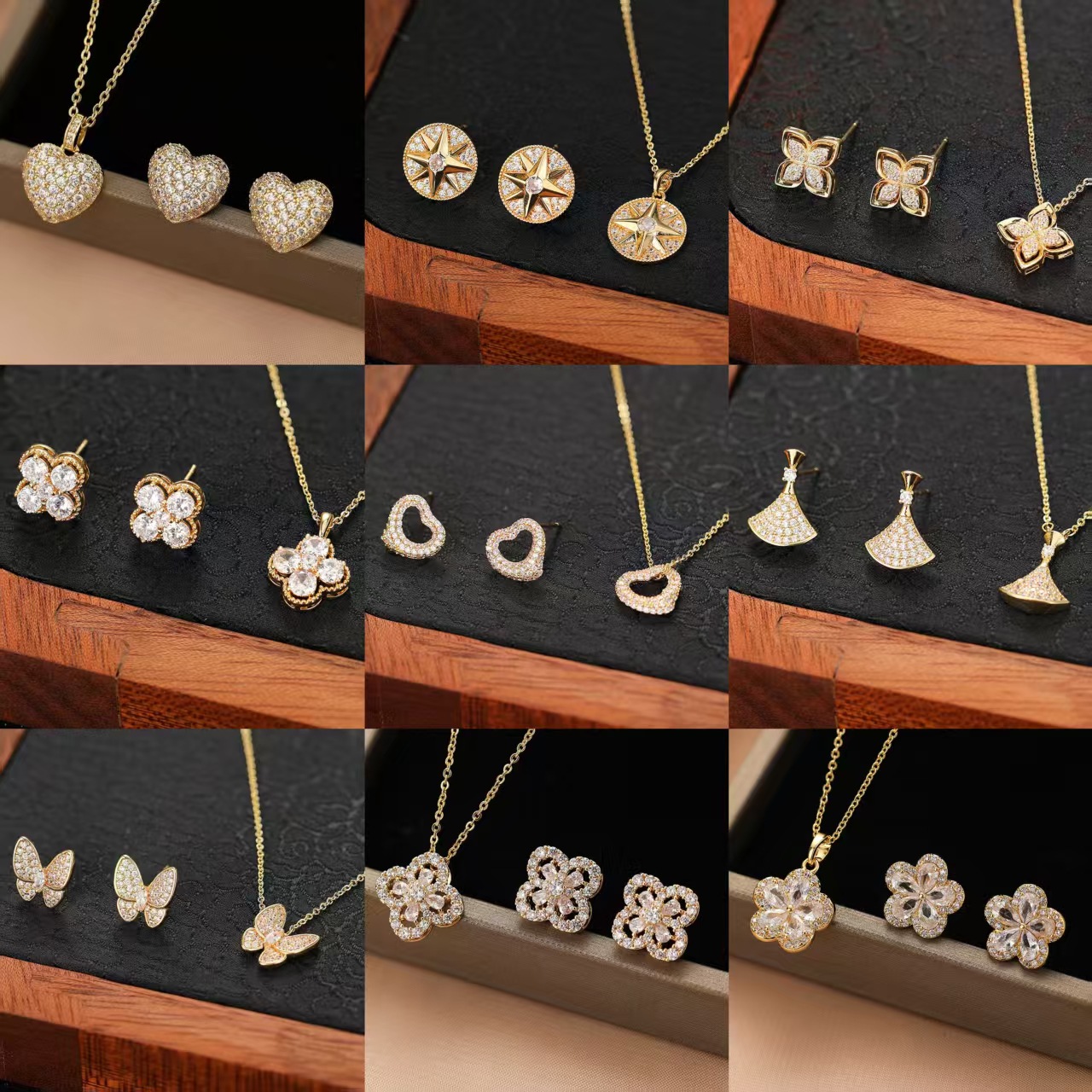 [suit] high quality Temperament Light Luxury Zirconium Heavy Industry Real Gold Electroplated Copper Micro Earrings Necklace suit Combination