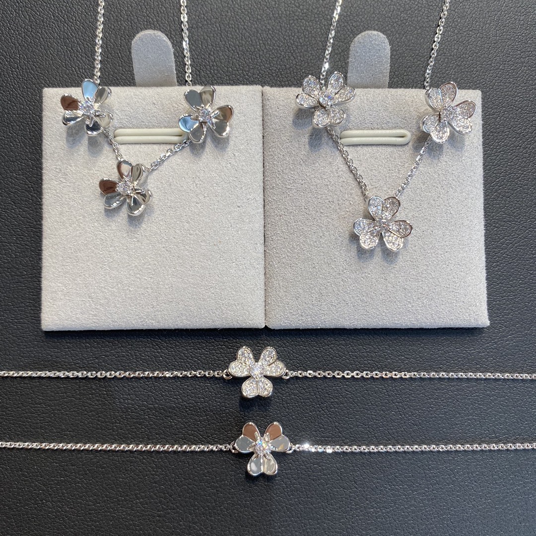 Frivole Series Clover Single Diamond Smooth Full Diamond Necklace Clavicle Chain Bracelet Earring Set 2024 New Style