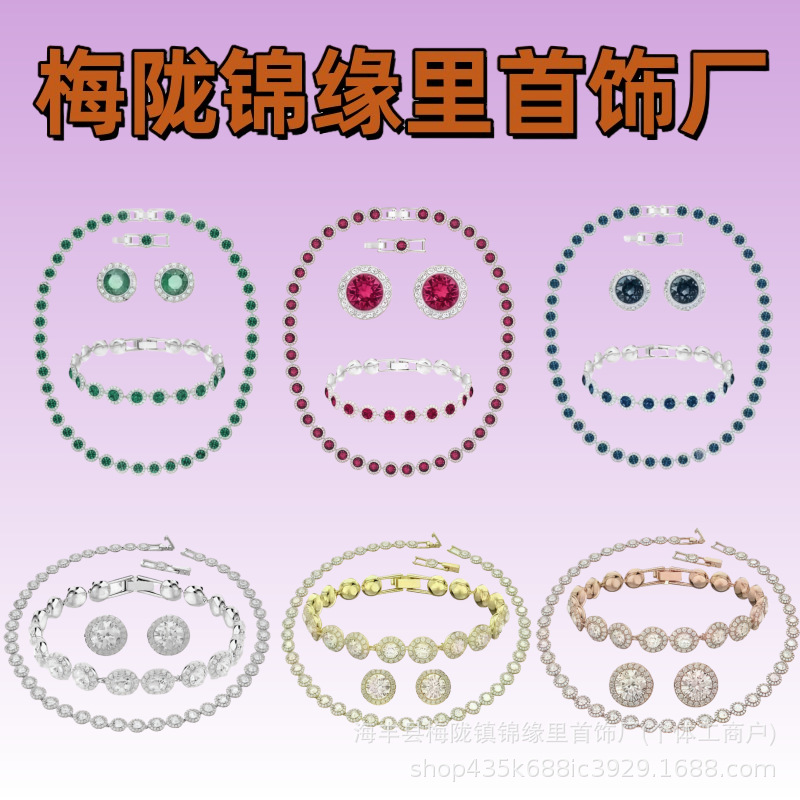 Cross-Border Aliexpress Shijia Crystal Bracelet Light Luxury Fashion Roman Full Diamond Titanium Steel Necklace Pendant Earring Set