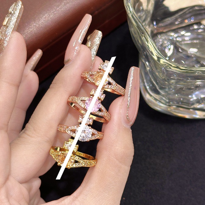 Cross-Border Hot-Selling Saturn Planet Flash Diamond Series Open Ring Niche Light Luxury Design Versatile Ring High-End Jewelry