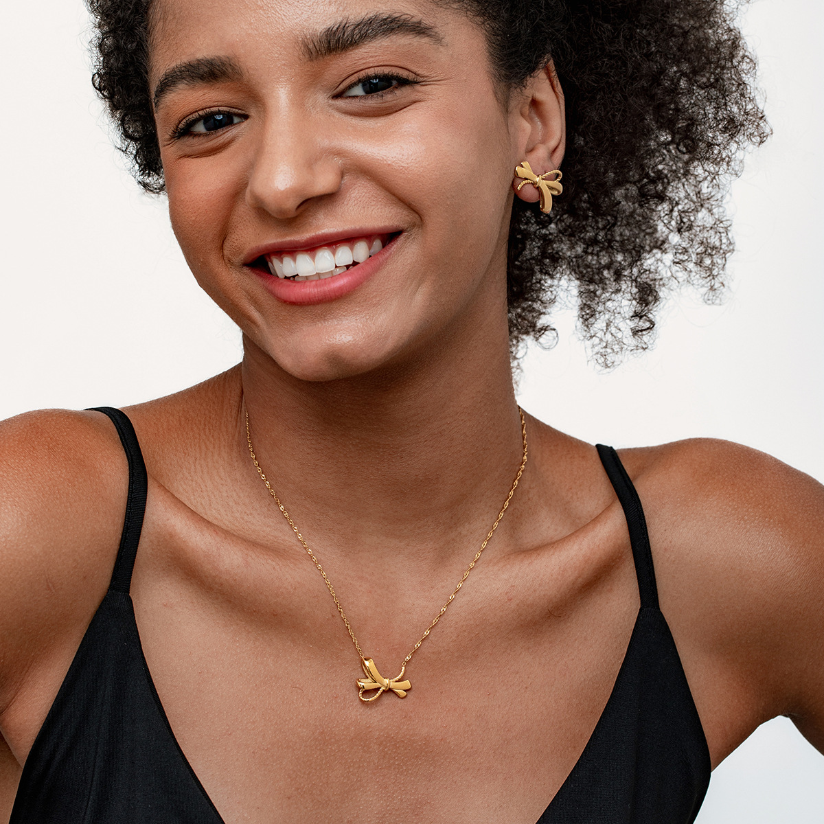 Cross-border Explosive Gold Color Necklace Women 2025 New Pure Gold Pendant Bow Collarbone Chain Original Design