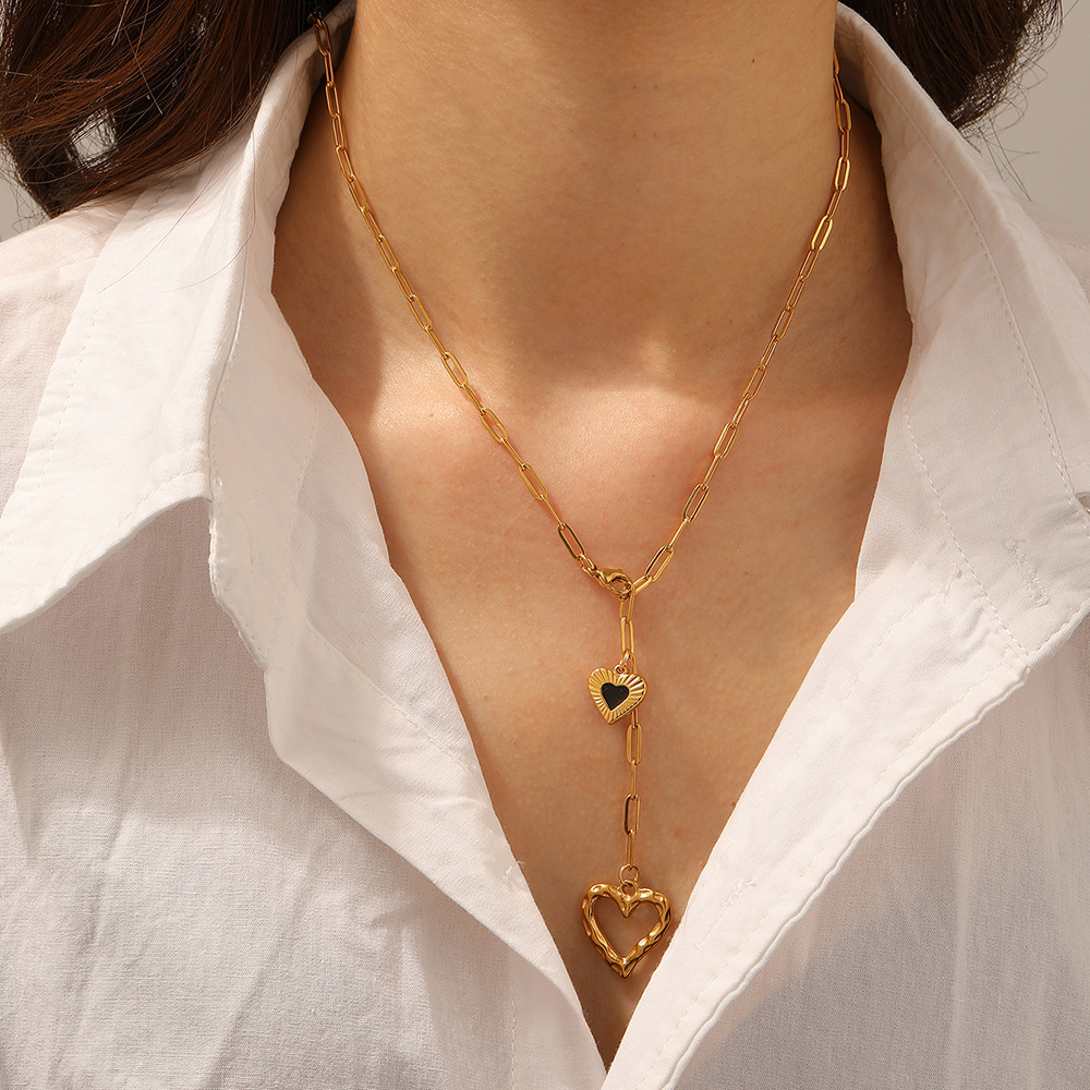 Cross-Border Stainless Steel Heart-Shaped Necklace European and American Titanium Steel Pendant 18K Gold Women's Autumn and Winter Accessories Multi-Layered Necklace