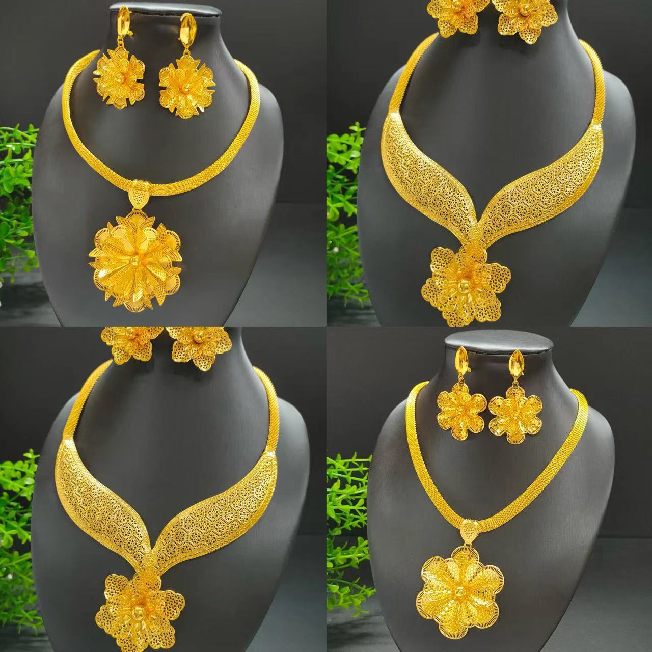 Dubai Jewelry Earrings Necklace Traditional Bridal Jewelry suit Trendy Flower Design Daily Dress Party Wholesale