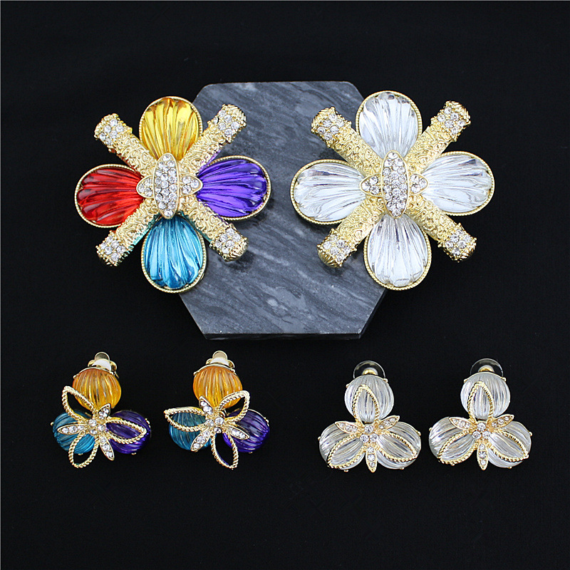 Retro court Baroque style electroplated real gold marking color double-layer brooch ear clip suit Qingdao manufacturer