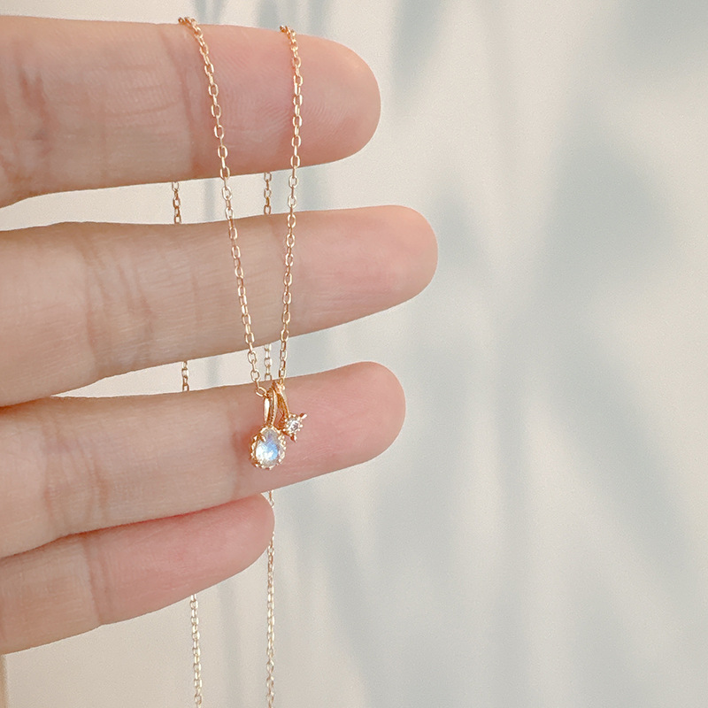 Japanese-Style Necklace 2025 Winter New Christmas Limited Silver-Plated 10K Gold Natural Labradorite Double Pendant Necklace Set