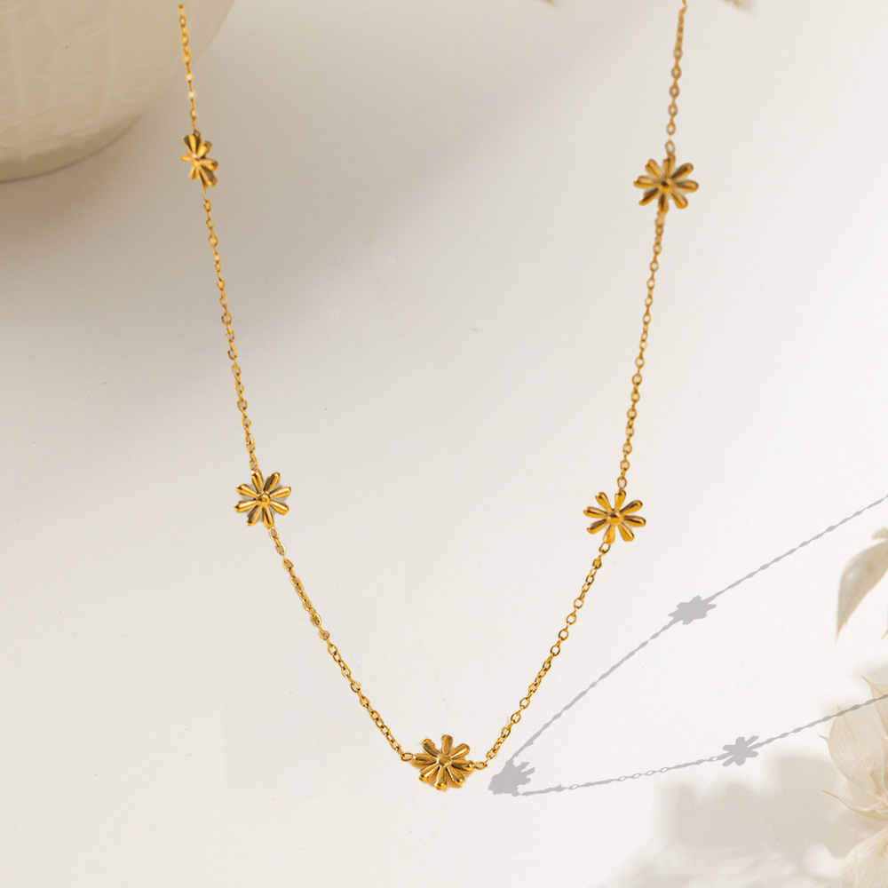 Fairy Elegant Floral Fresh Design Small Daisy Titanium Steel Gold-Plated Necklace Non-Fading Popular Blogger Jewelry Set