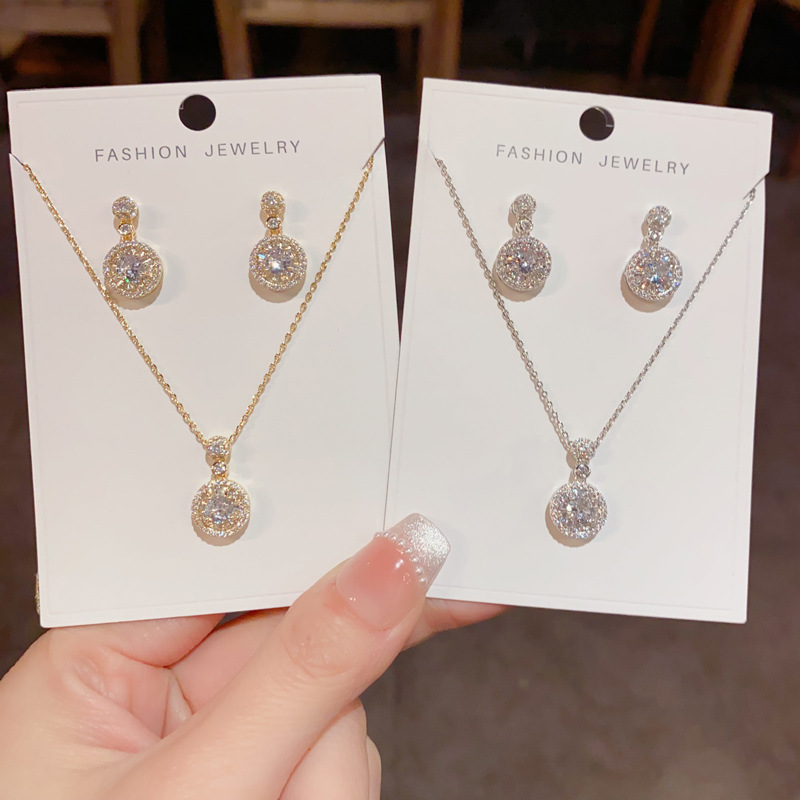 Niche fashion light luxury Joker super flash full zirconium ring pendant necklace suit temperament simple commuter earrings wholesale