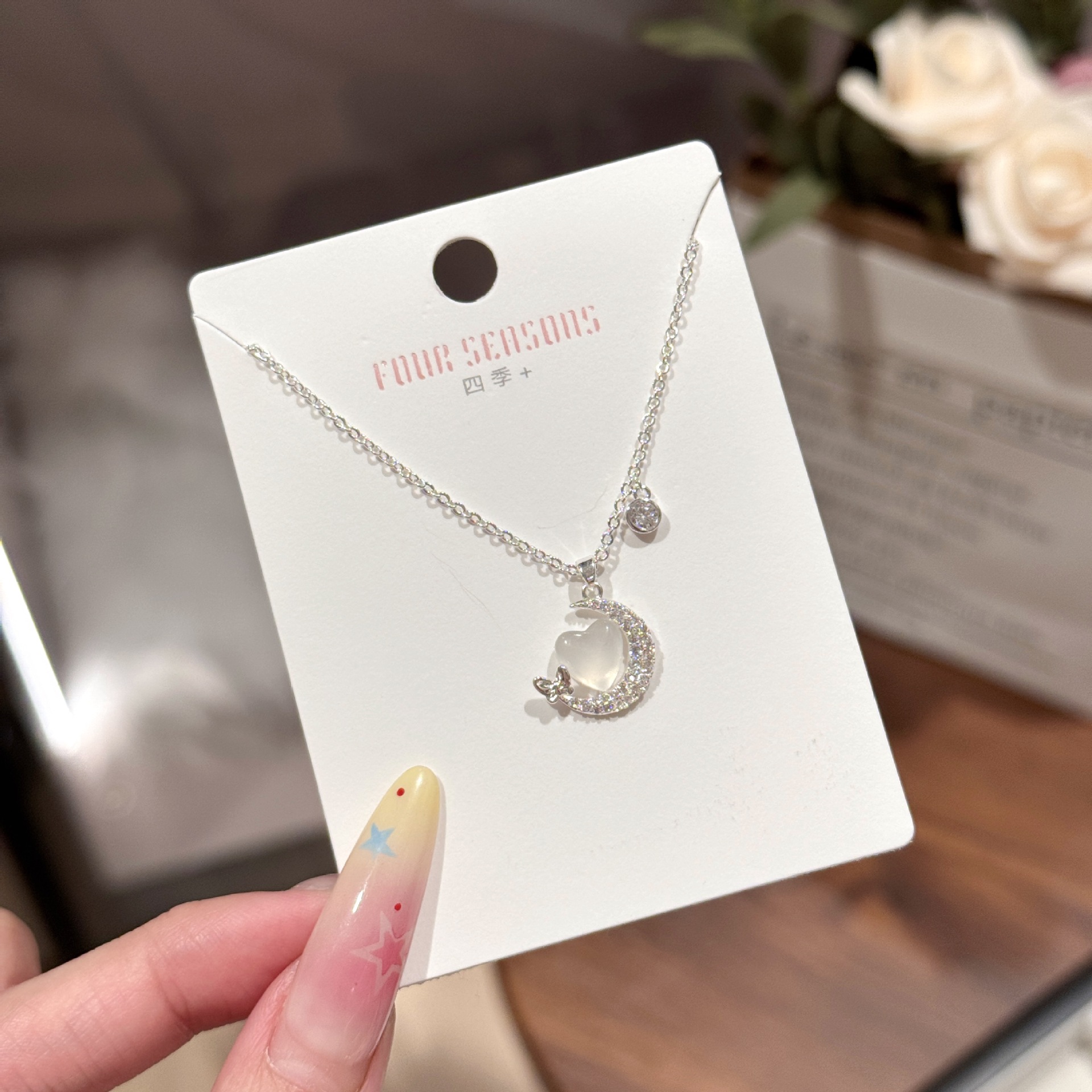 Star and Moon Necklace Heart-Shaped Pendant Warm Jewelry Niche Design Clavicle Chain Earrings Set Butterfly Love Necklace
