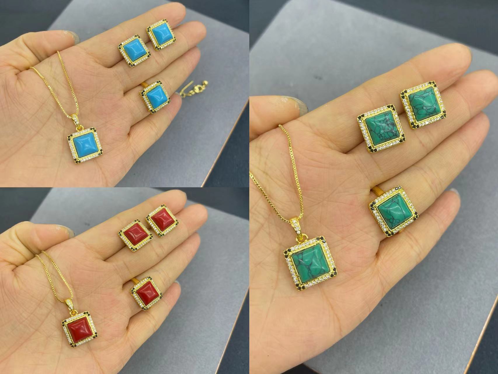 Folk style new Xizang red turquoise suit 18K real gold color-preserving electroplated Jewelry necklace